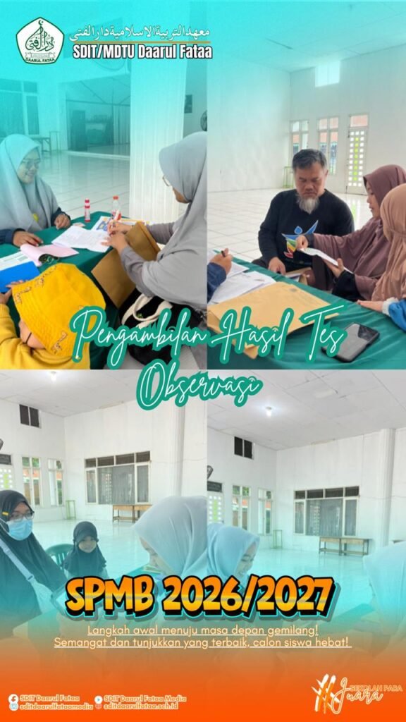 Setelah melalui proses penilaian dan evaluasi yang menyeluruh, pengumuman hasil Tes Observasi Gelombang 1 telah disampaikan pada hari Sabtu, 20 Desember 2025. Pengumuman ini menandai selesainya tahapan seleksi pada Gelombang 1 SPMB SDIT Daarul Fataa.
